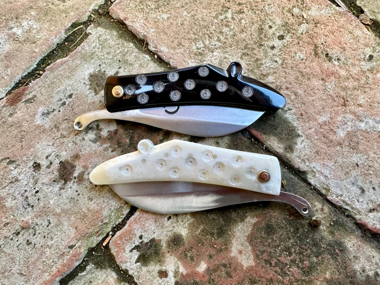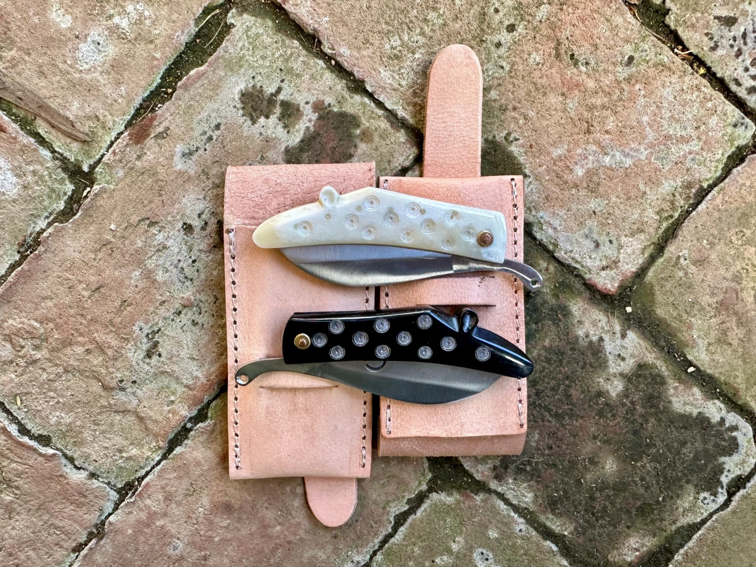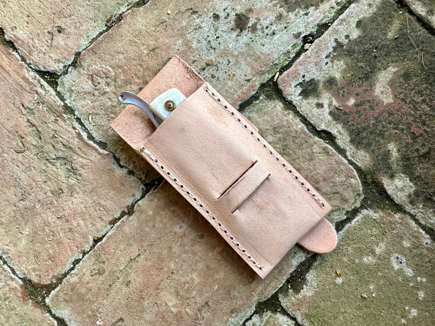 This could of course be a razor, but is much more likely to simply be a folding knife as they would have found these as useful as we do and very handy to keep in your pouch. The blade is held open with the thumb tag rather than being a ‘friction folder’. The blade is sold sharp.