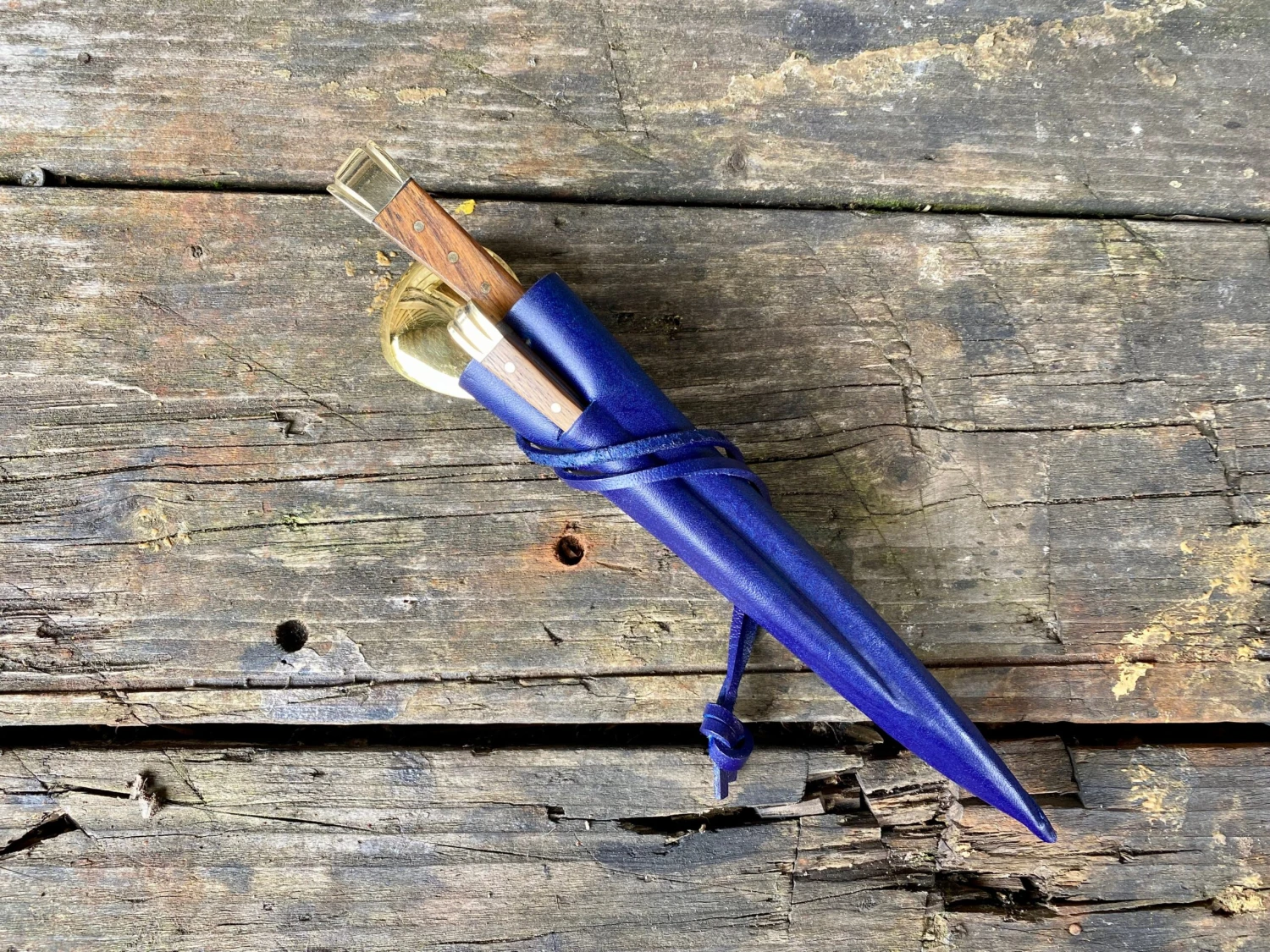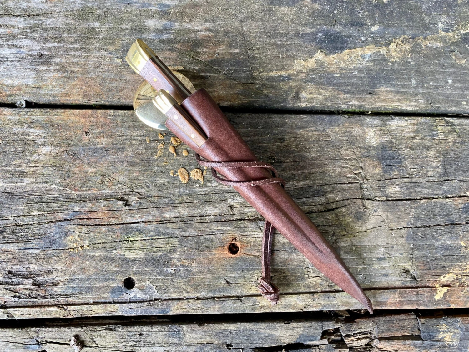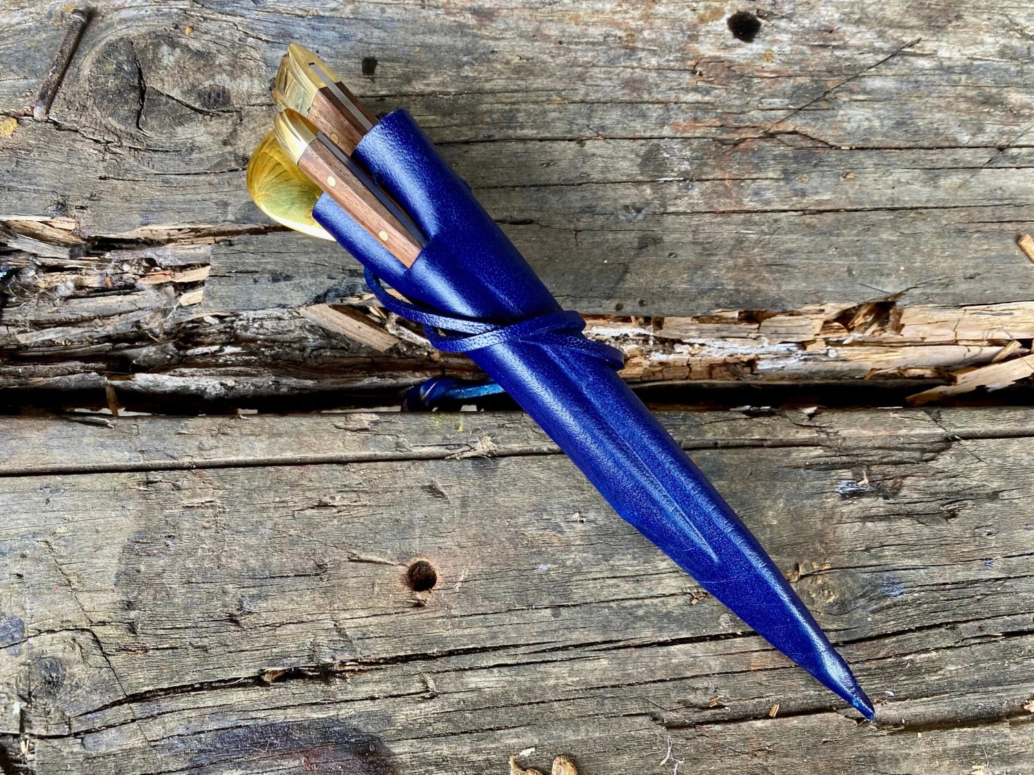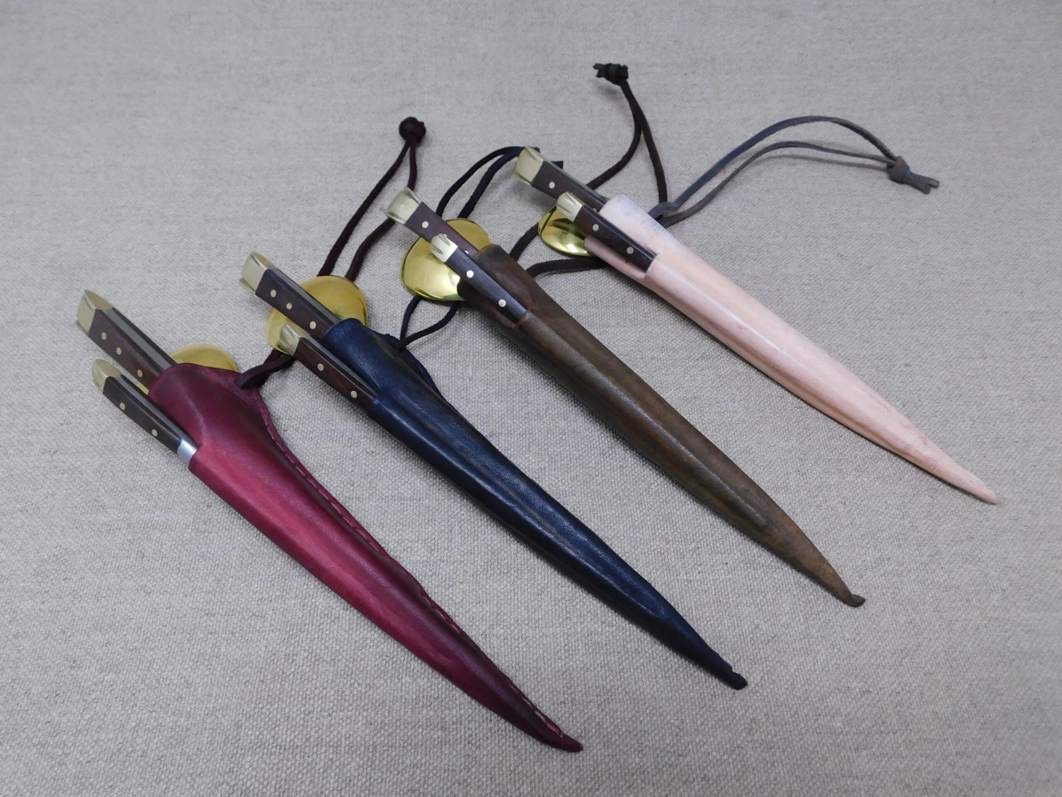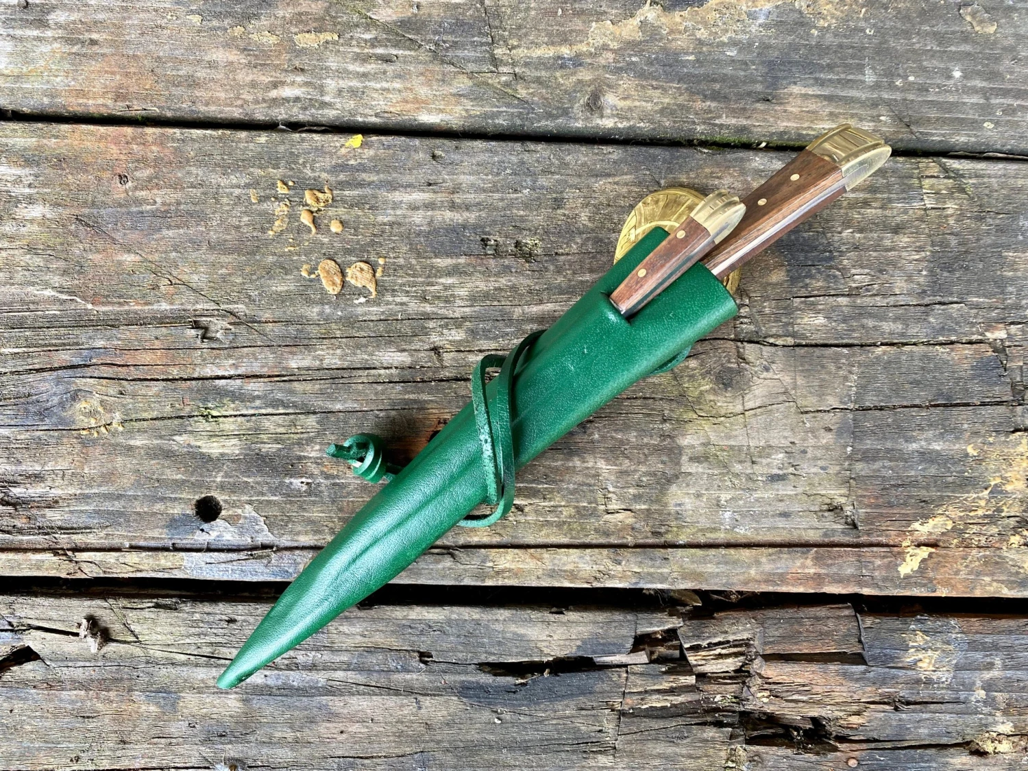 The medieval eating set comes in a 3 pocket moulded veg tan leather sheath.