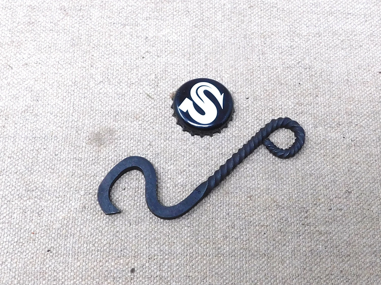 Hand forged steel beer bottle opener – exact copy of what a blacksmith would have made if they had beer bottles.