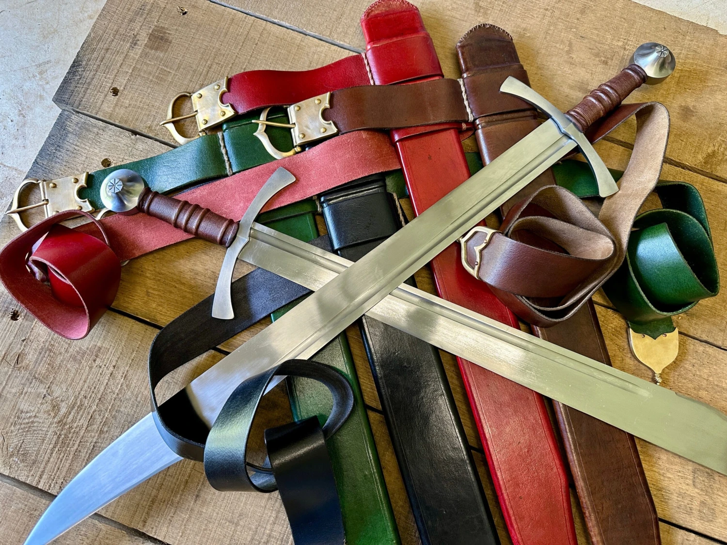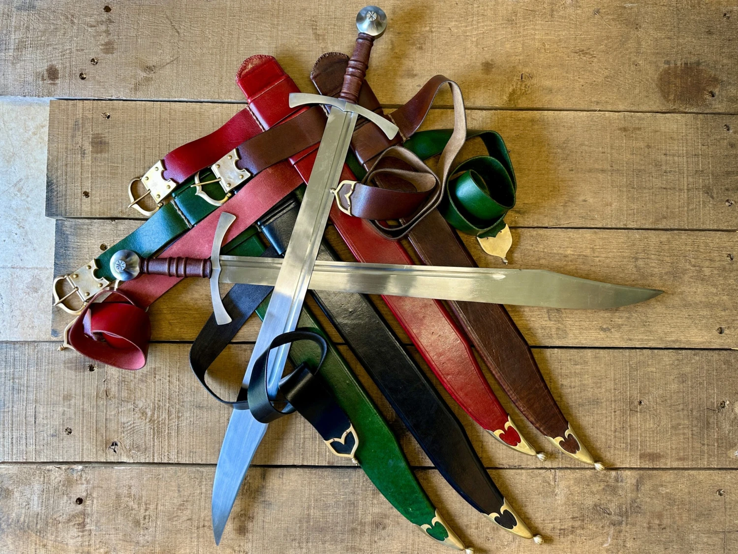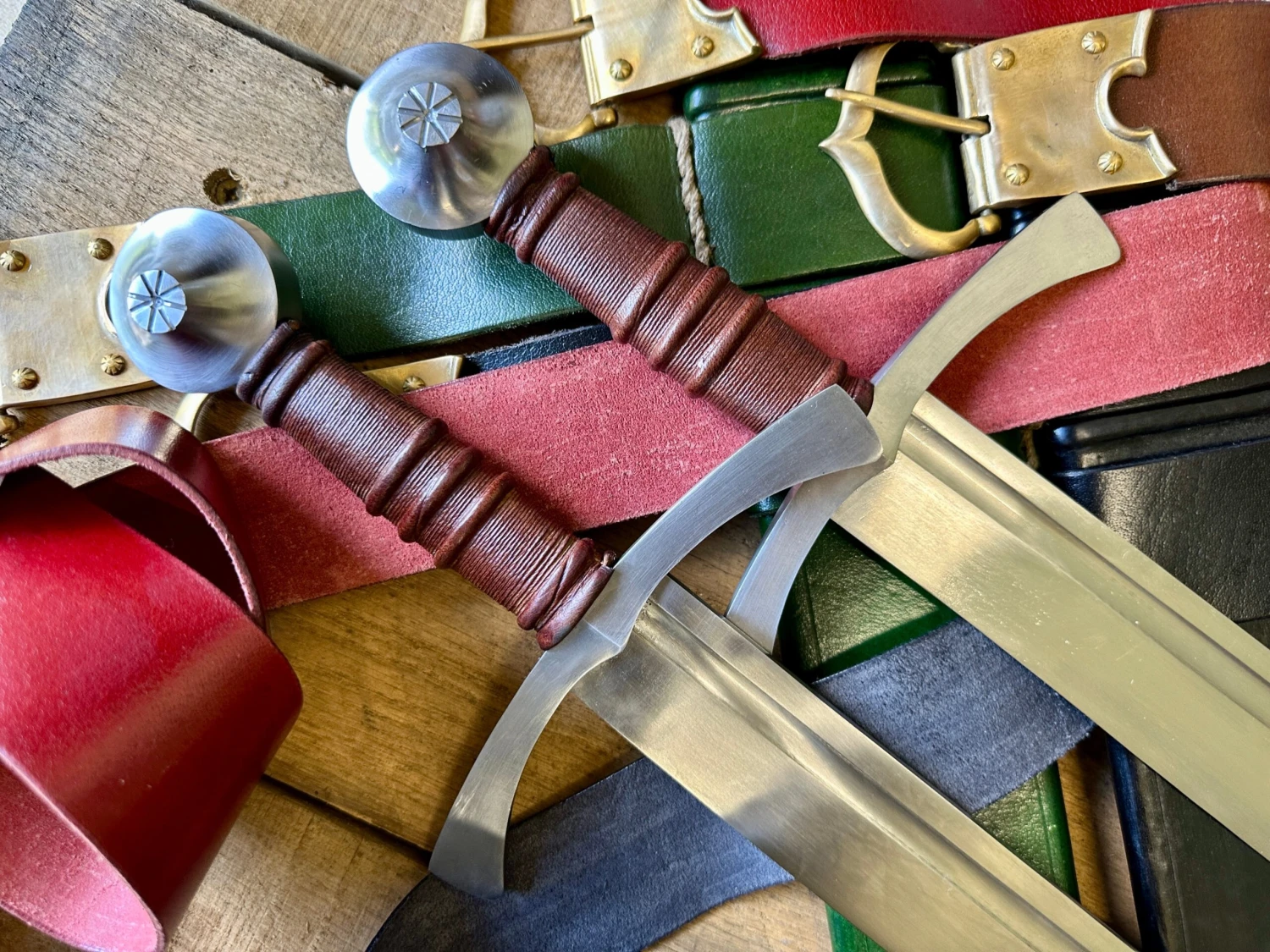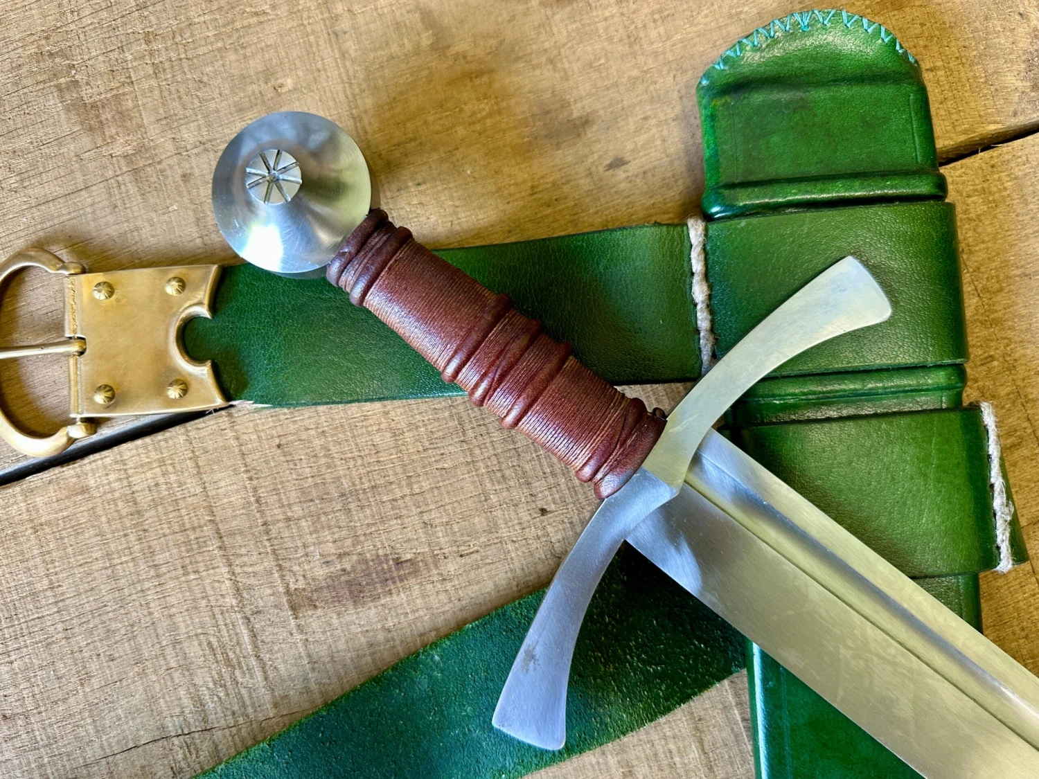 Sword comes complete with a period appropriate leather covered, wood cored scabbard and belt with copper alloy fittings. Sword is hand forged, hardened and tempered from EN45 steel and comes semi-sharp as standard.
