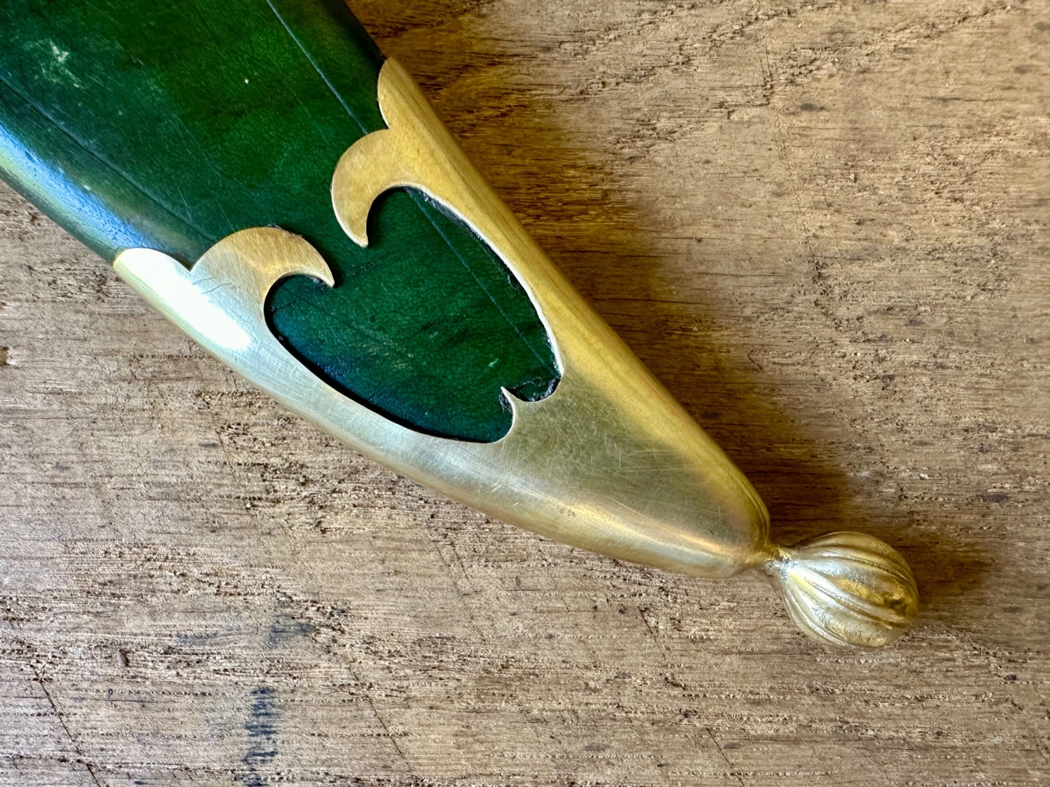 Popular in most of Western Europe, this falchion style of short single edged sword was typical of the 14thC and features a straight back with a long sweeping cutting edge and a long clip point allowing for both powerful cuts and wicked thrusts. The blade may be broad, but the use of fullers a radically thinning blade profile and both the clip point and sharpened false edges make this far manoeuvrable than it would at first seem from pictures alone. Well suited to professional fighting men.