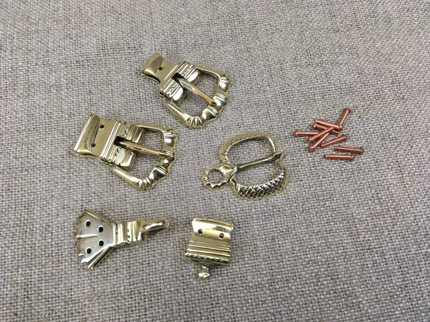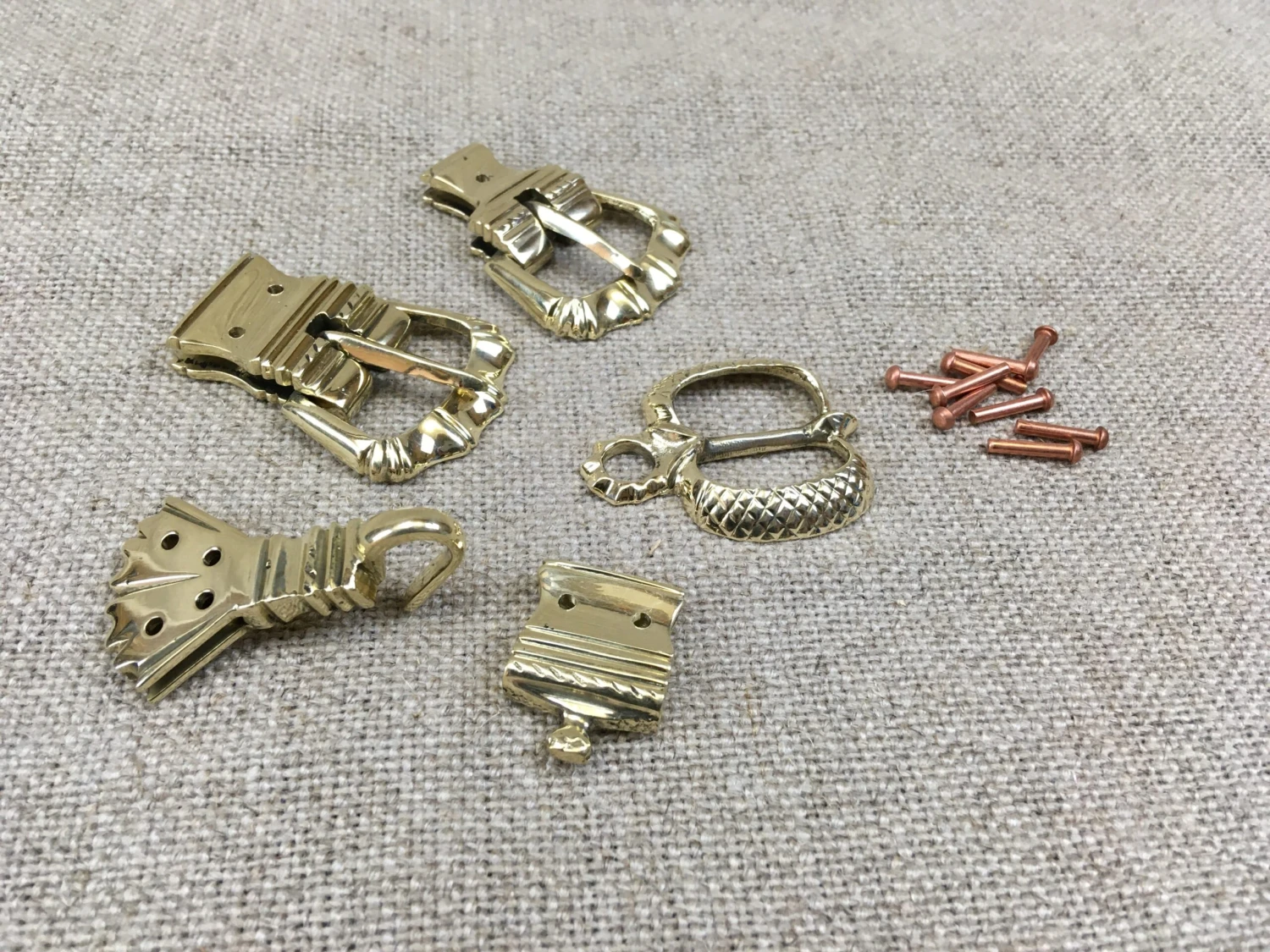 14th/15thC sword belt set and used for suspending longswords. All the metal parts you need for the belt and harness.