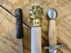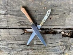 A simple scale tang knife with a wooden handle and no bolsters. This knife is well suited to lower class people and peasants over a wide period of time.