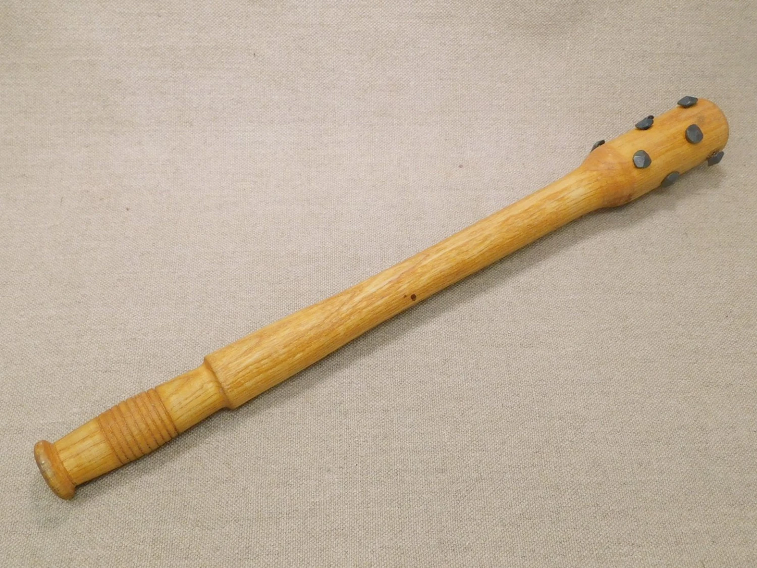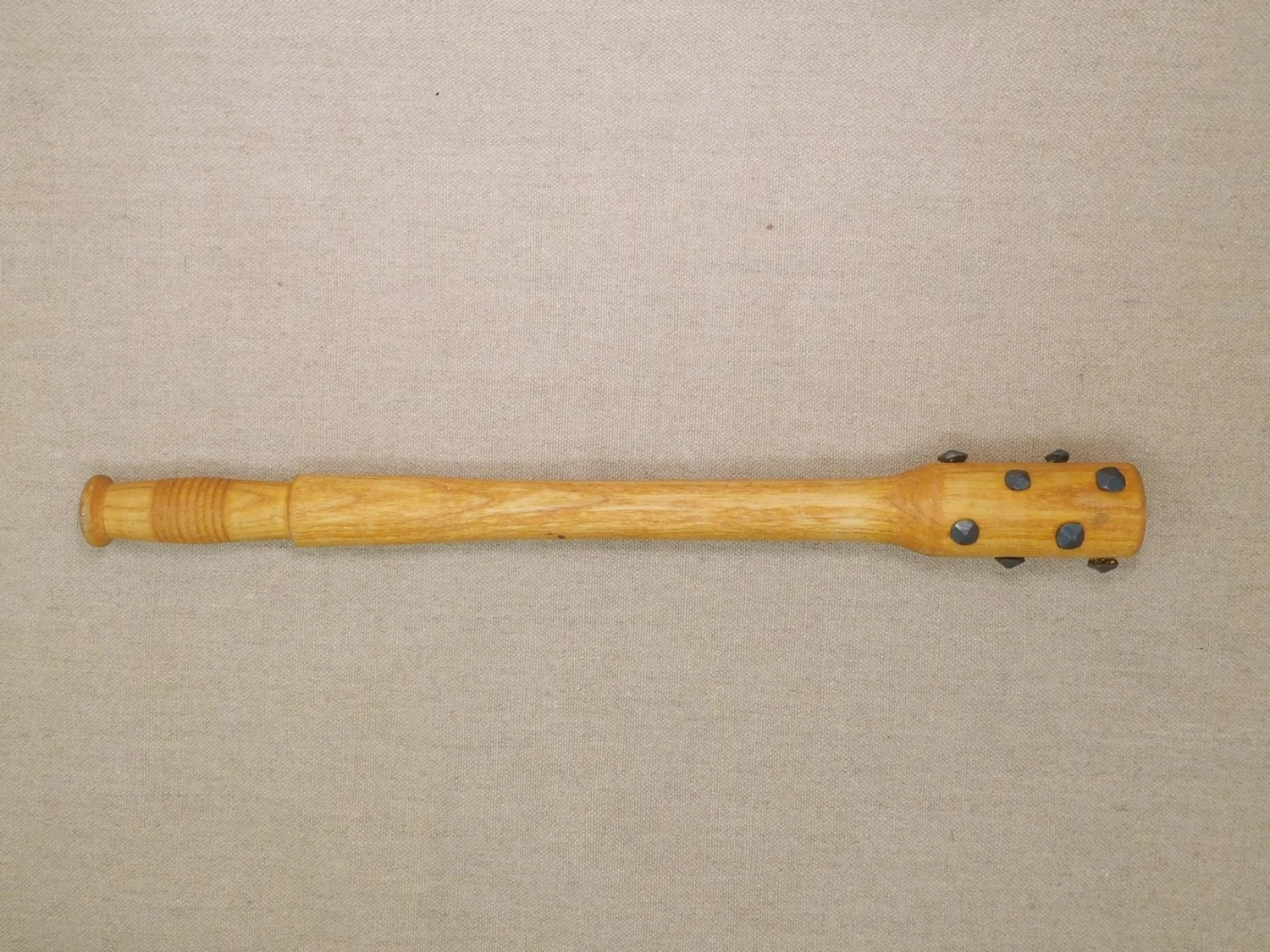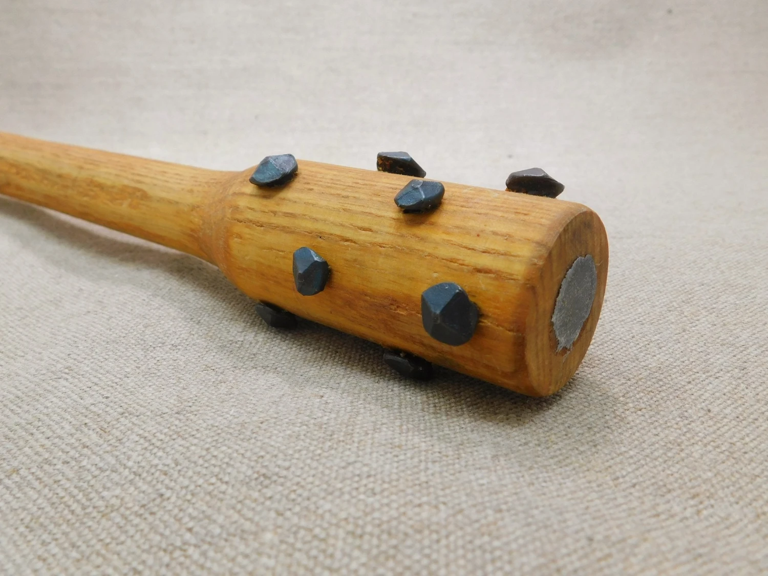 Lead weighted, ash shafted, nailed. A simple maul that could have been made in any village.