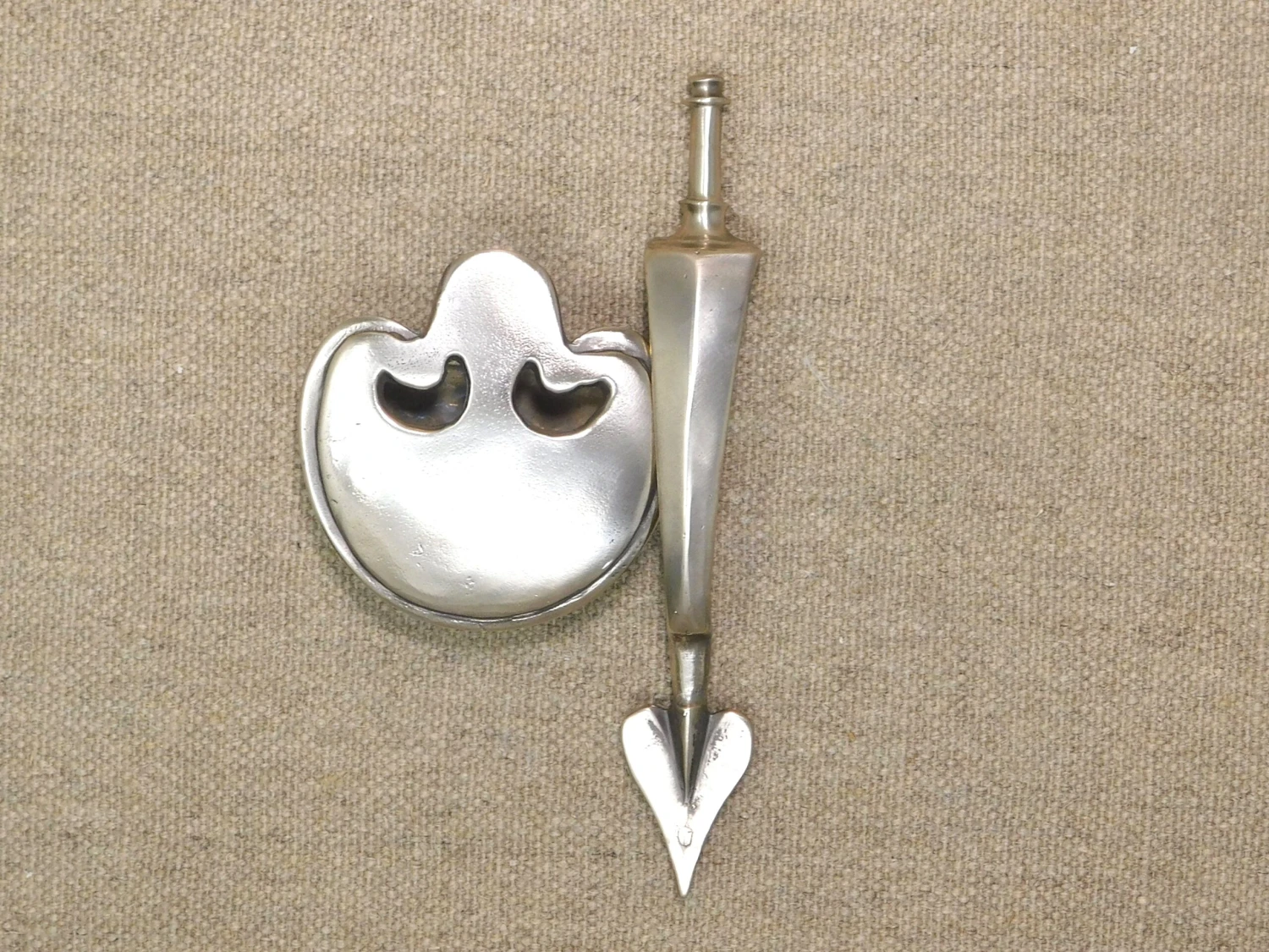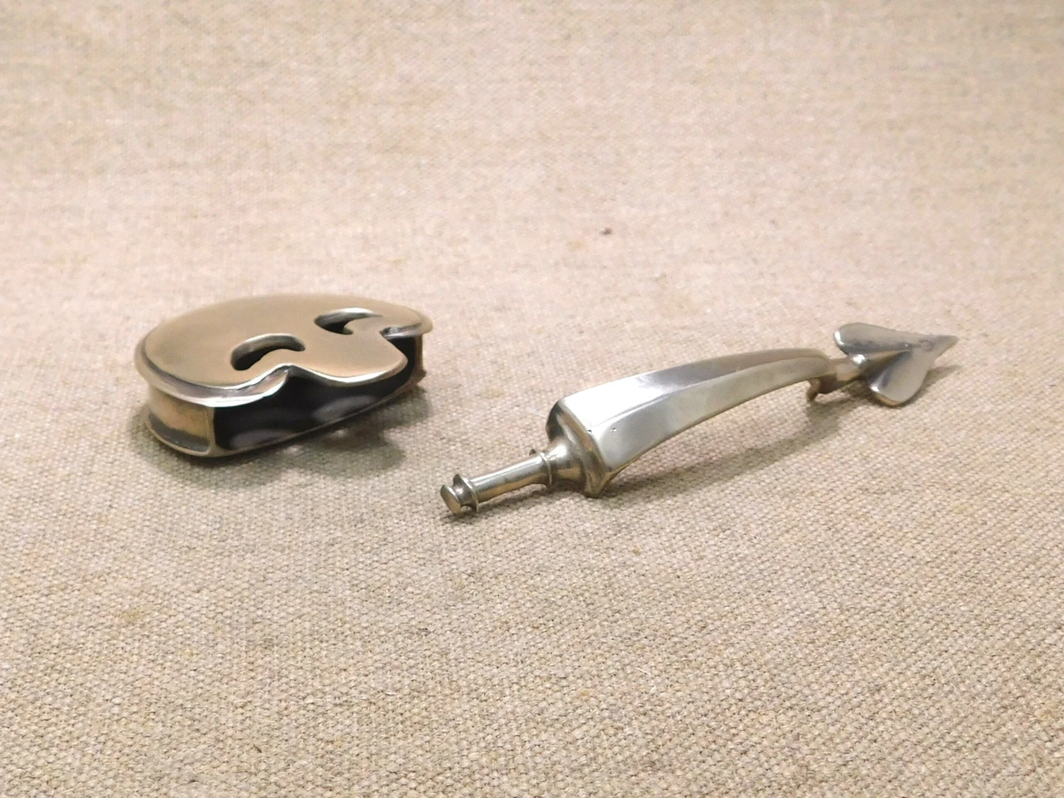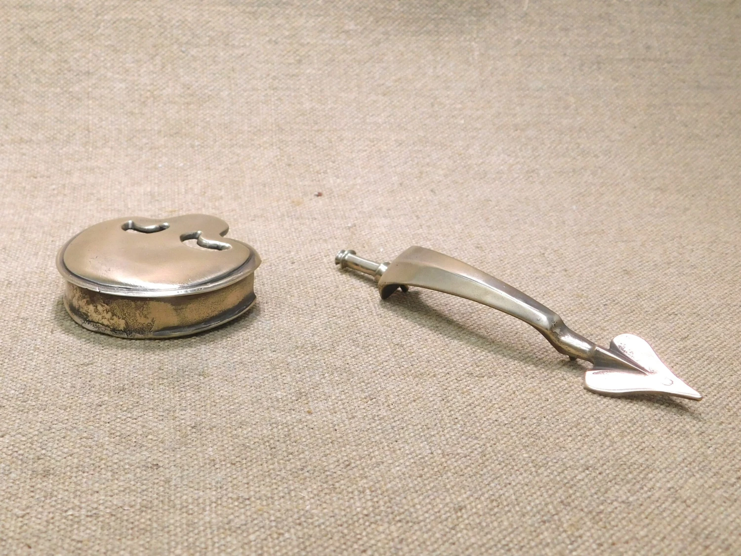 They are cast in bronze and comprise a scabbard chape and a slider.